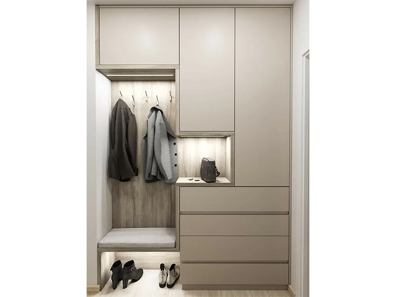 Ayakkabı, mont ve aksesuarlar için düzenli depolama sunar